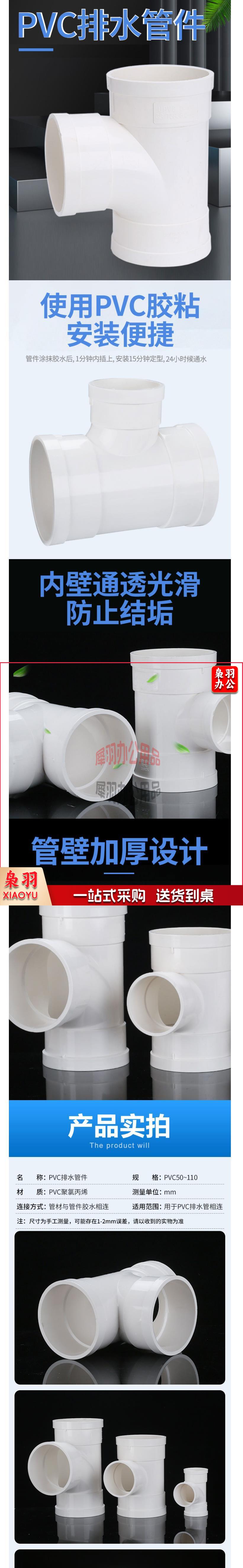 PVC等径三通 排水管件 正三通 75mm 货号:JC