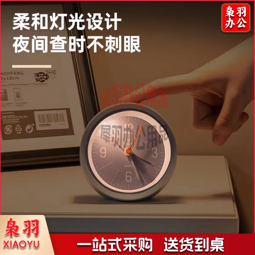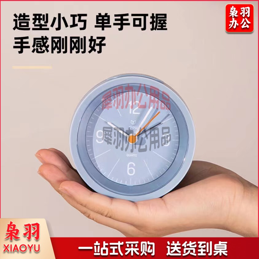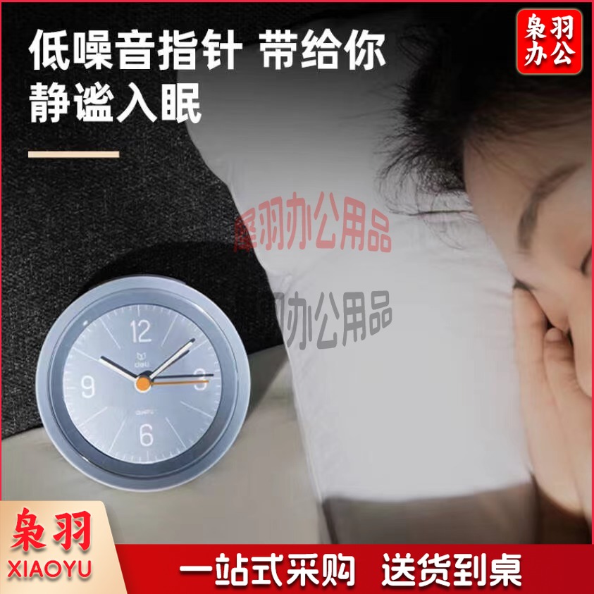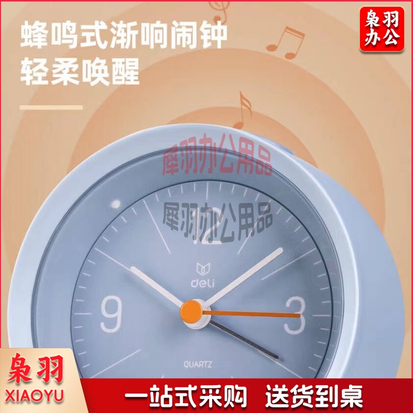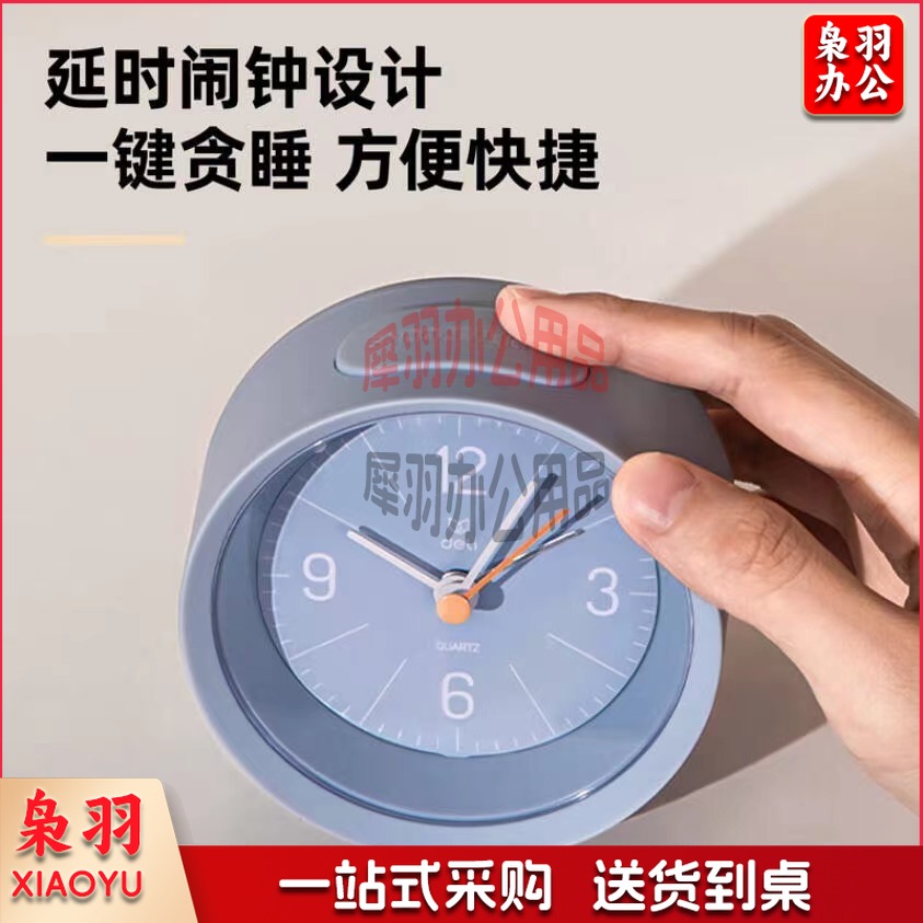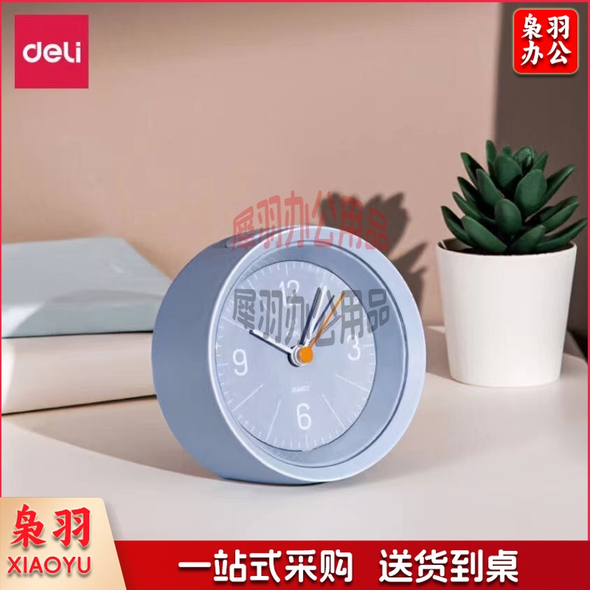 得力(deli)小蓝圆筒闹钟 简约小巧指针式闹铃闹钟 低噪走时柔光夜灯 床头必备 LE300-BU