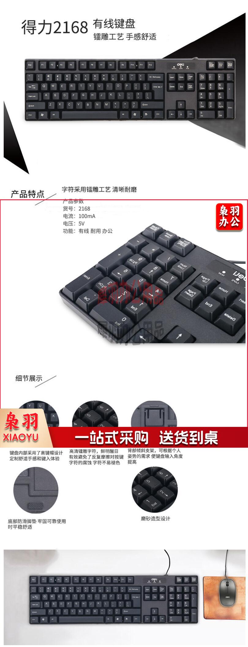 得力(deli) 2168 USB键盘 游戏键盘 防水薄款黑色