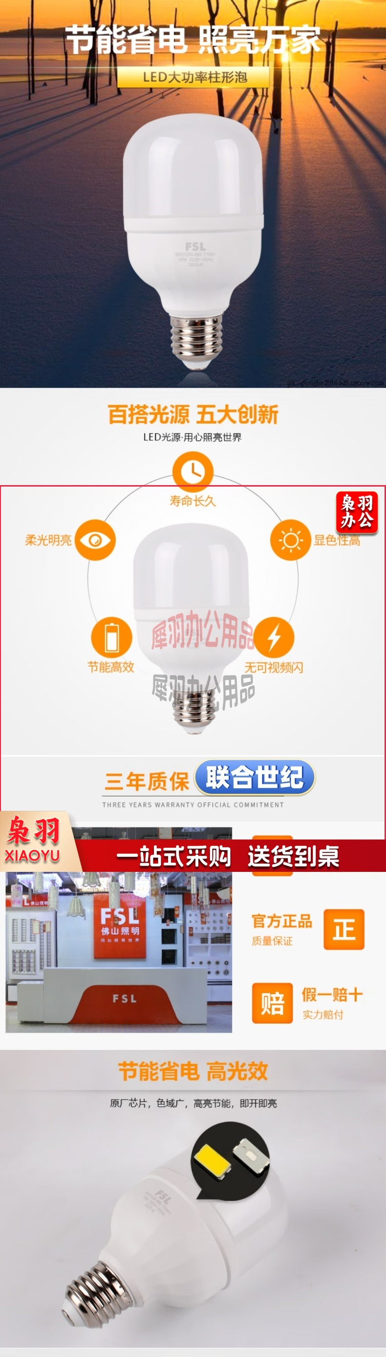 佛山照明大功率LED灯泡42W节能灯具E27螺口6500K白光柱形