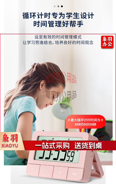 闹钟 得力(deli)多功能闹钟计时器 正倒/循环计时 学生答辩练习考试计时 厨房烹饪时间管理 可响铃震动 粉色、绿色、白色随机发货 8841