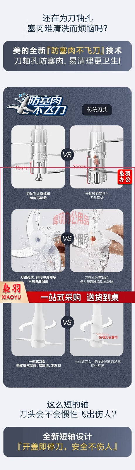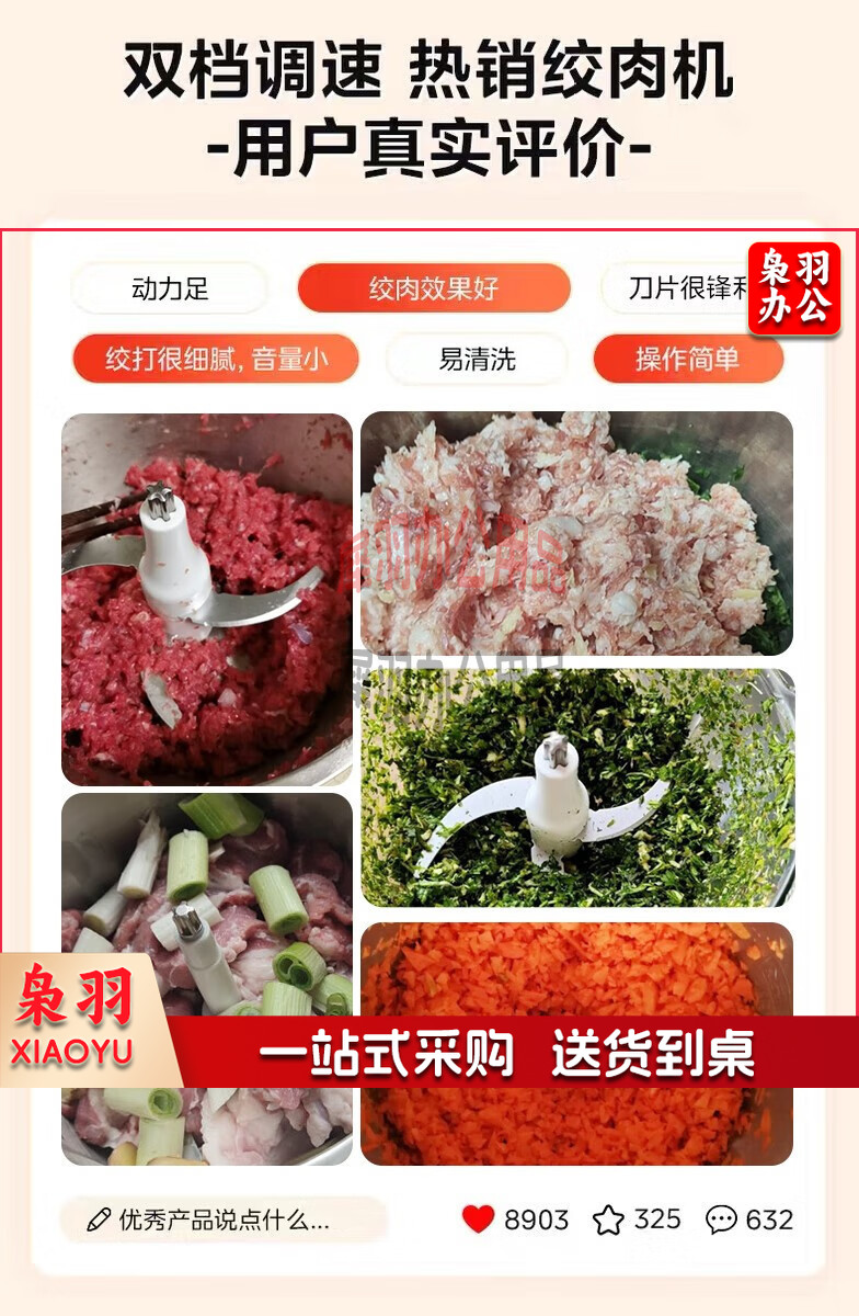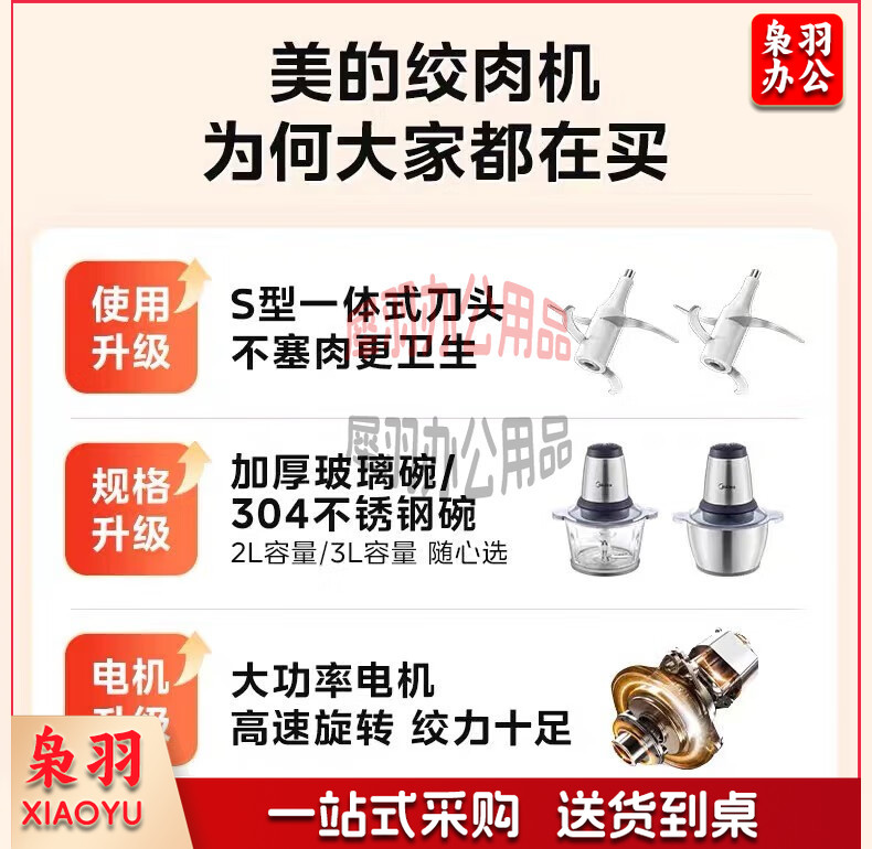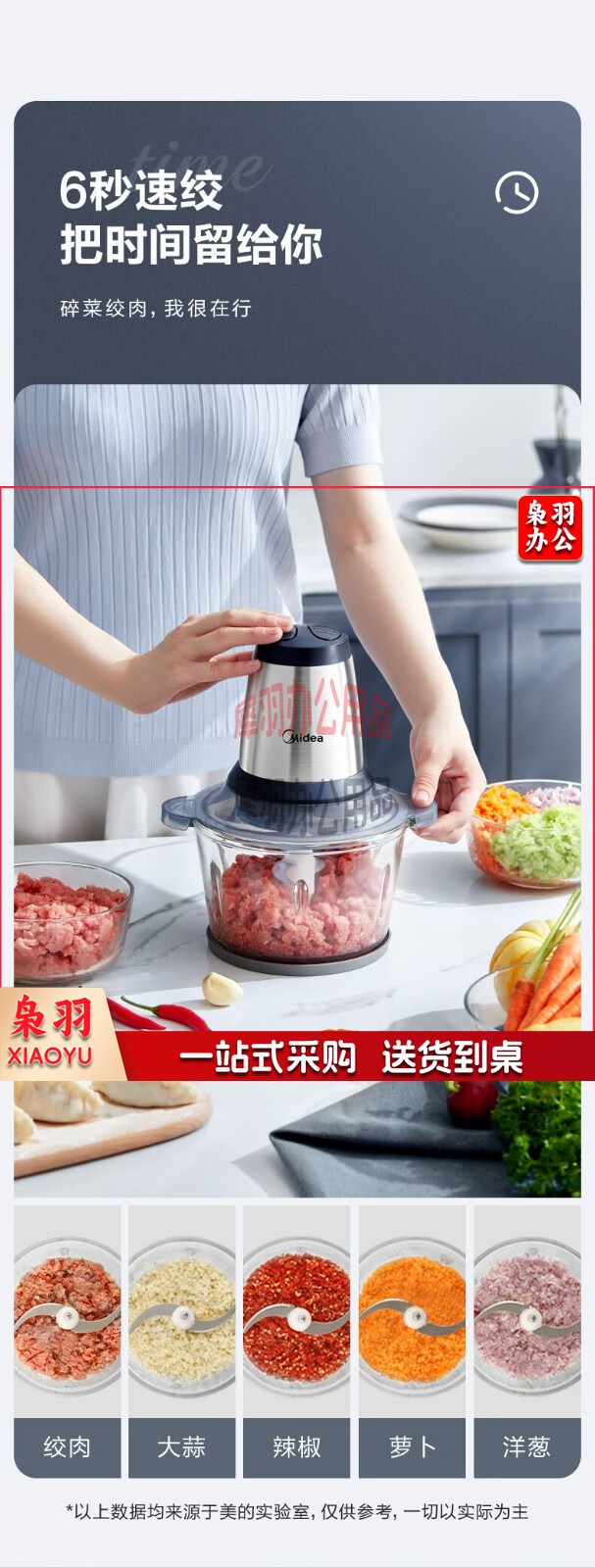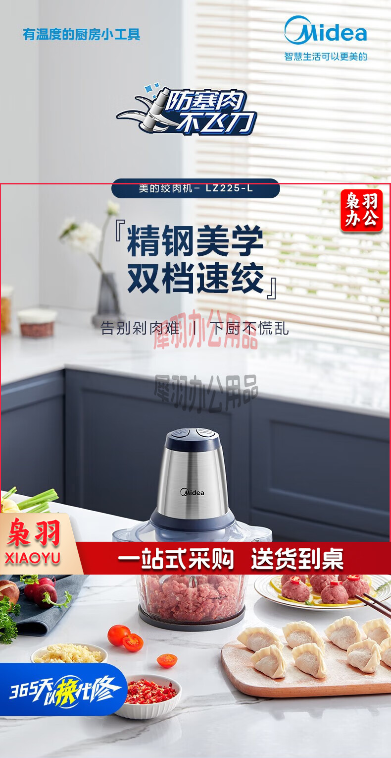 美的(Midea) 绞肉机家用婴儿辅食机料理机碎菜绞肉馅机台式搅拌机智能电动绞馅机碎肉机粉碎机搅肉机 【2L家用配双刀】LZ225B-L
