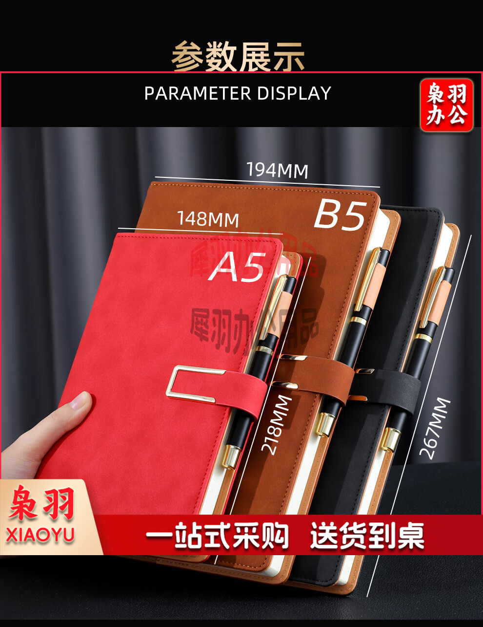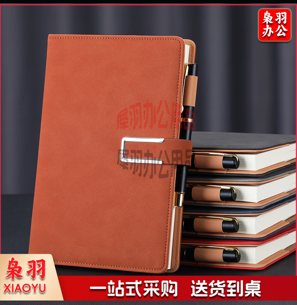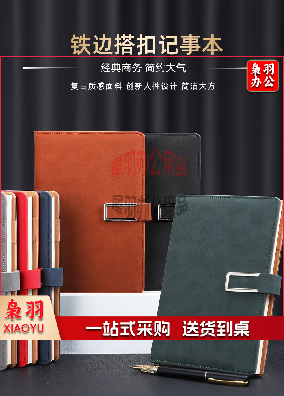 朗捷(longe) 商务笔记本本子加厚记事本羊巴皮面笔记本子文具搭扣日记本办公会议记录本定制logo a5棕色(单本)