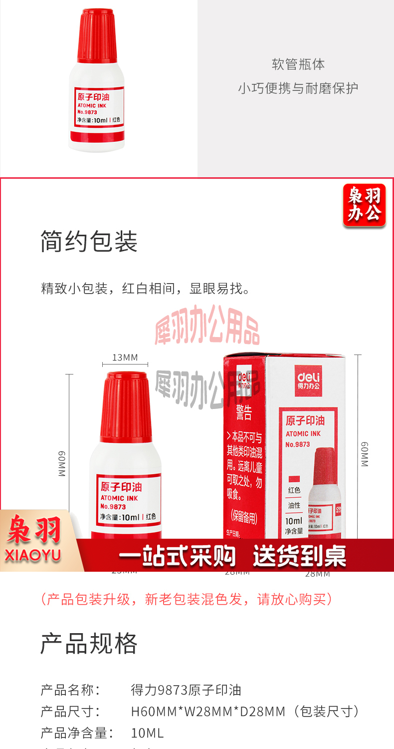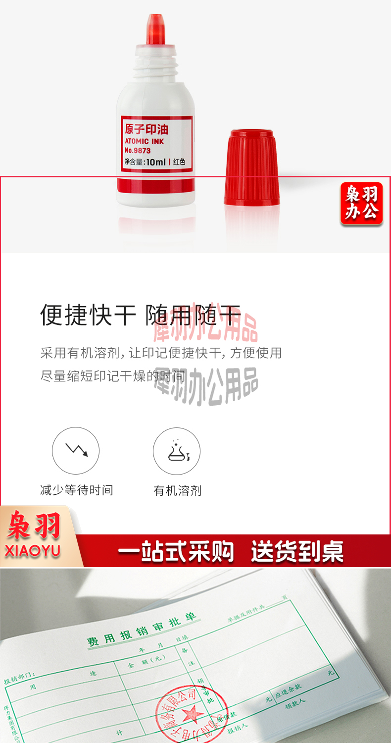 得力(deli)10ml财务印章原子印油 红色原子印章油 办公用品 9873 XH.134