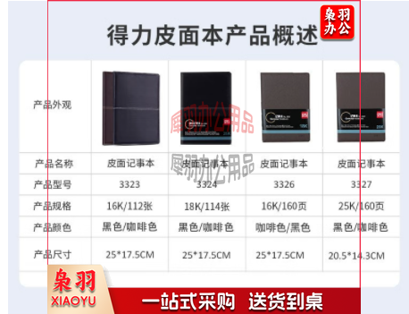 记事本 笔记本 得力 3326 高级记事本(黑)-160页-16K (单位:本)