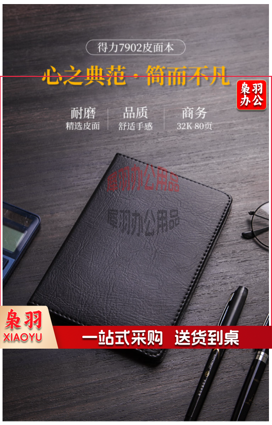 记事本 得力 7902 皮面笔记本日记本-80张-32