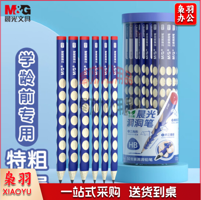 晨光(M&G)文具 洞洞铅笔30支HB 特粗杆易抓握 幼儿学龄前专用 儿童正姿矫姿 三角木杆铅笔AWP30770 TJHX01291710447091