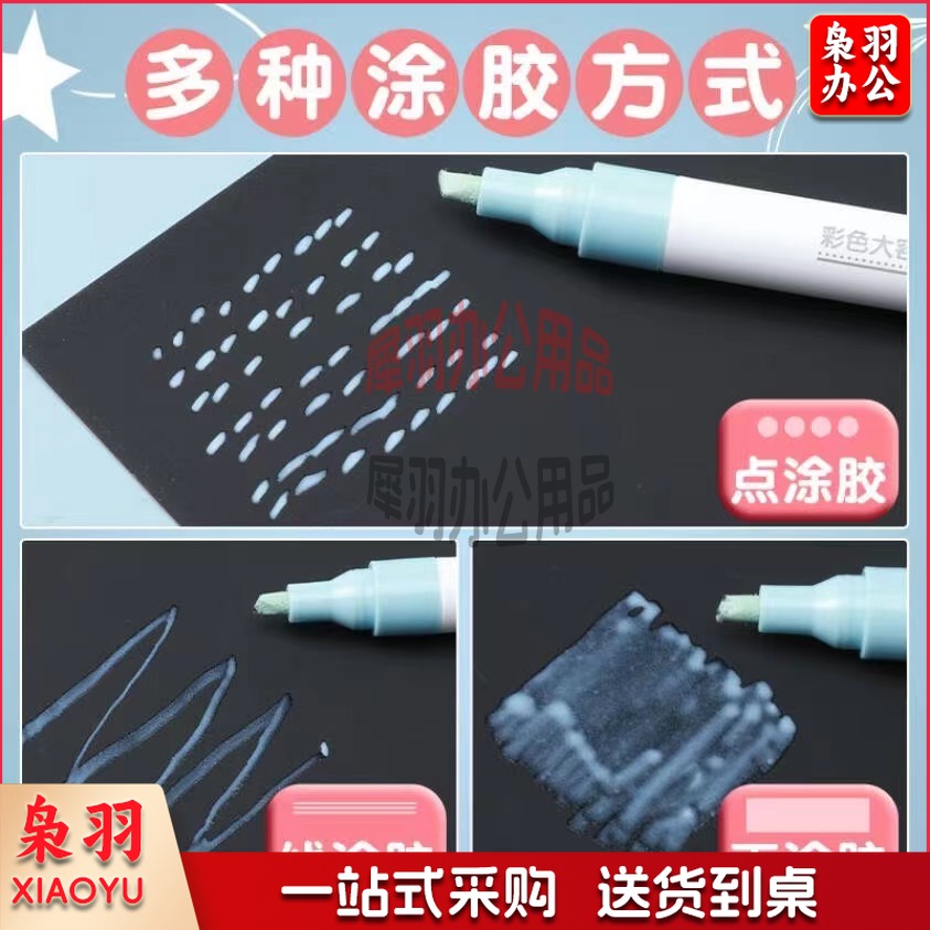 晨光彩色点点胶笔形笔状双面胶大容量液体胶水学生手帐儿童DIY手工贴纸装饰点状胶办公文具用品U2406 3支 / 各色1支