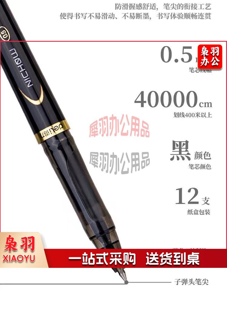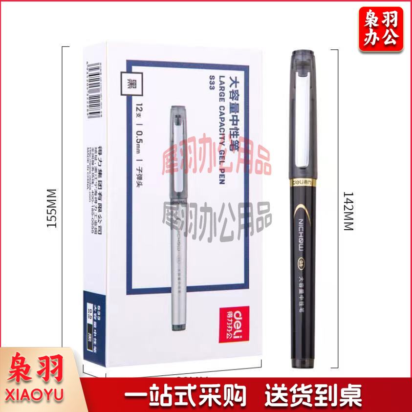 得力(deli)0.5mm黑色碳素大容量中性笔 办公用品 水笔签字笔12支/盒