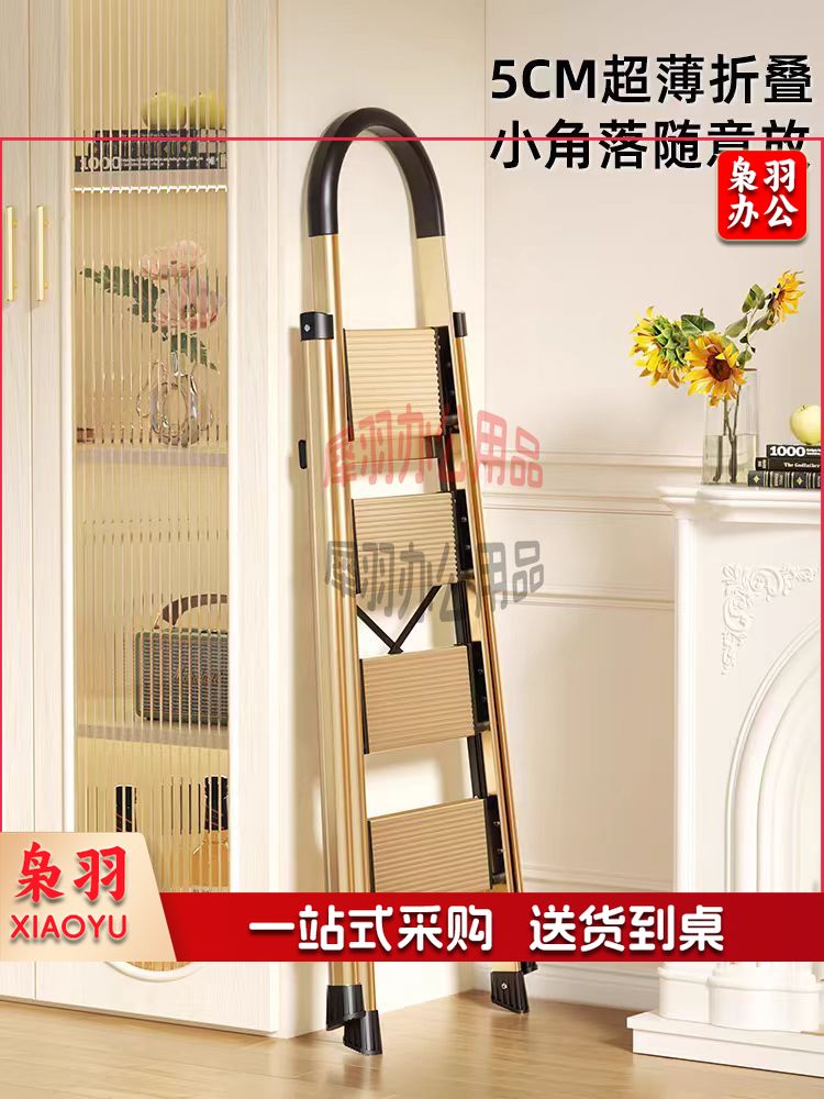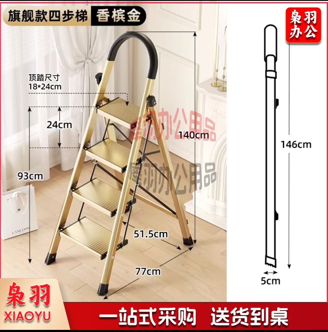 梯子家用折叠人字梯铝合金加厚室内小扶梯 步楼梯多功能爬梯(香槟金四步梯)全踏板加宽18cm