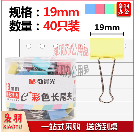 燕尾夹 长尾夹 晨光(M&G)ABS92742 19mm长尾夹彩色 40枚/筒 1盒装