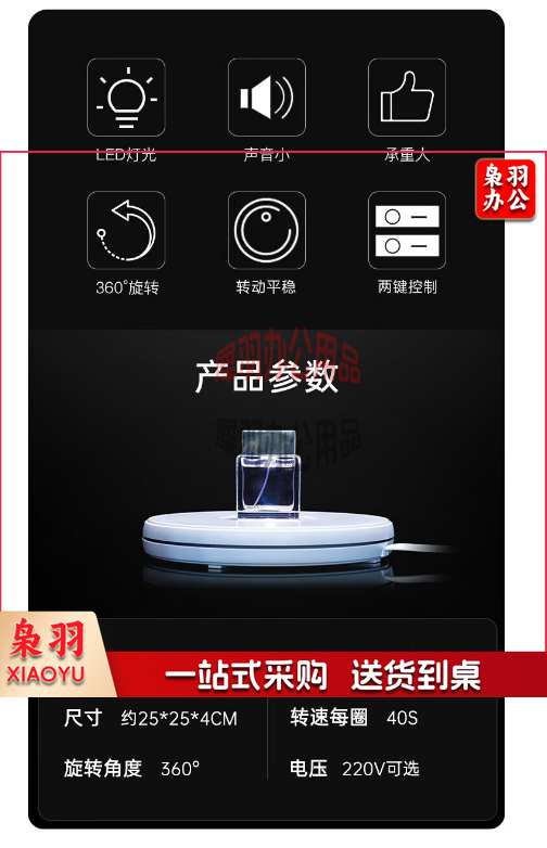贝阳摄影电动转盘拍摄自动旋转静物拍摄台 自带LED补光灯产品展示转盘 40秒一圈(承重10KG)直径25cm