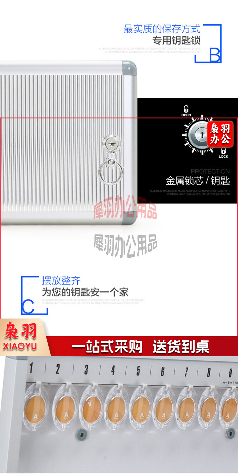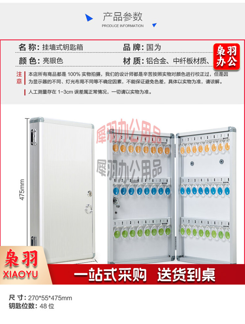铝合金钥匙收纳 钥匙管理箱/钥匙盒/钥匙柜壁挂含钥匙牌 48位钥匙箱带锁