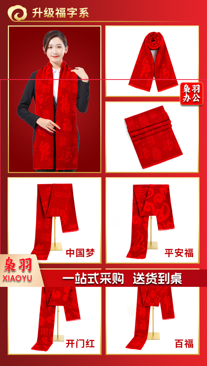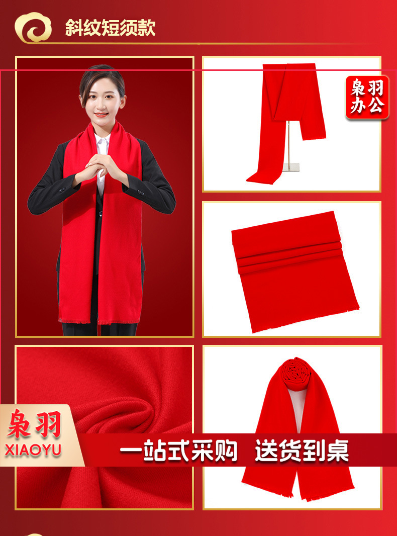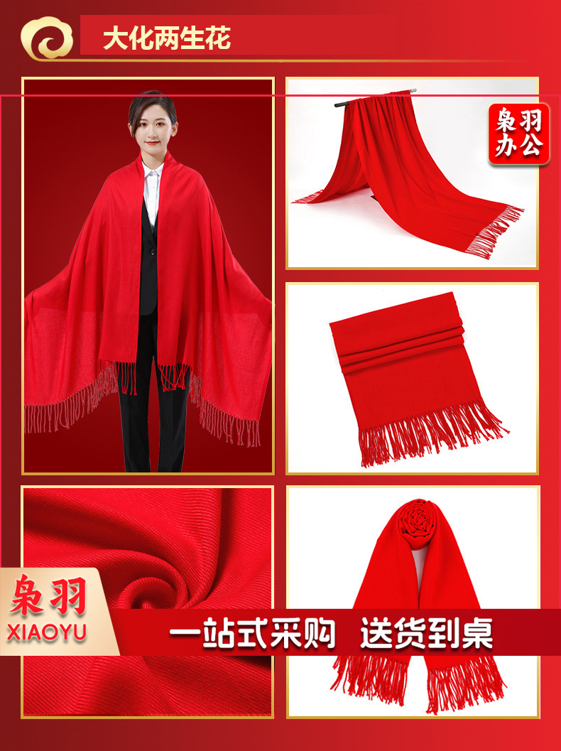 年会红围巾仿羊绒中国红围巾红色礼品刺绣双面绒A款 175cm以上