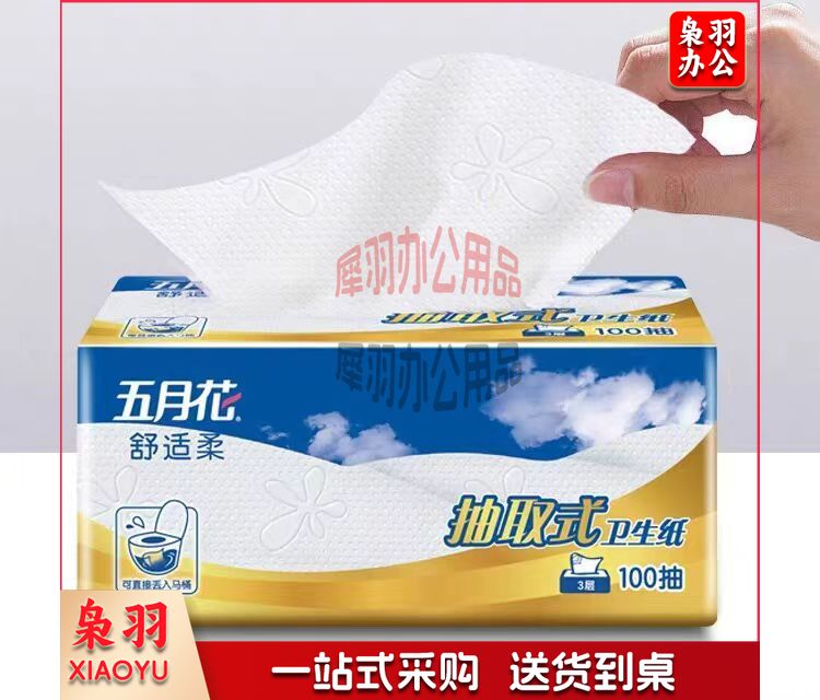 五月花抽取式卫生纸 厕纸抽纸压花加厚 100抽/包 6包装