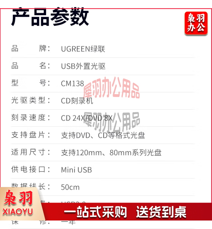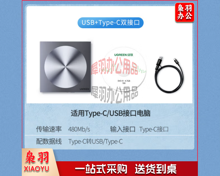 绿联 8倍速 USB外置移动光驱 DVD光盘刻录机 适用笔记本电脑台式机外接光驱 USB款 免装驱动 40576