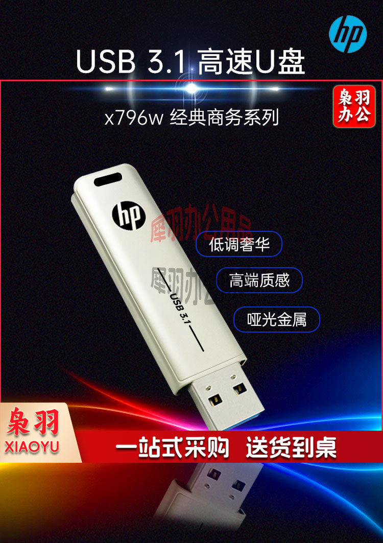 惠普(HP)128G USB3.1 U盘 X796w 香槟金 金属商务可伸缩高速读写电脑车载两用优盘