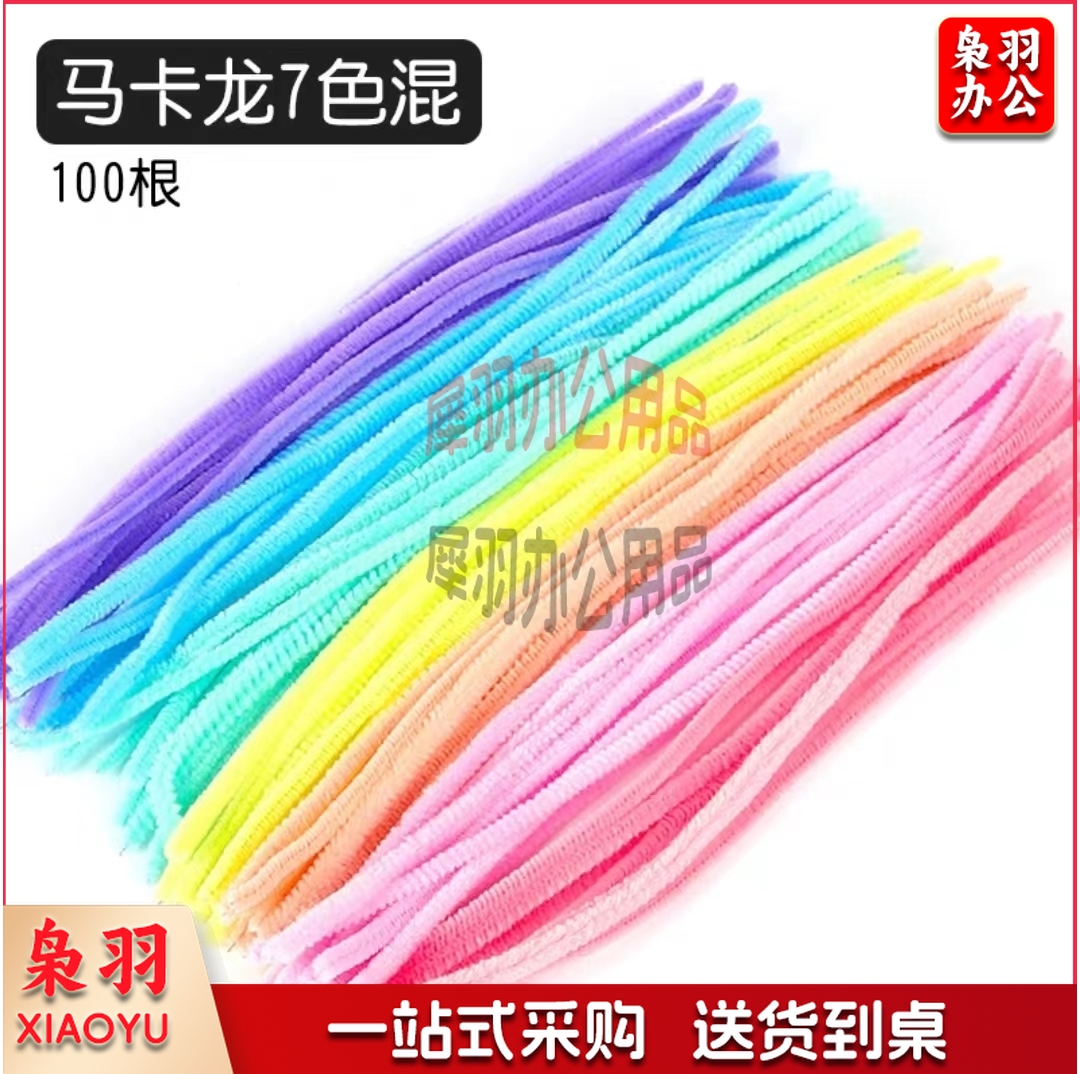 混色马卡龙加密绒扭扭棒毛根条diy彩色毛绒条手工创意益智玩具网红花束制作(1把100根)(如需单一颜色可备注)