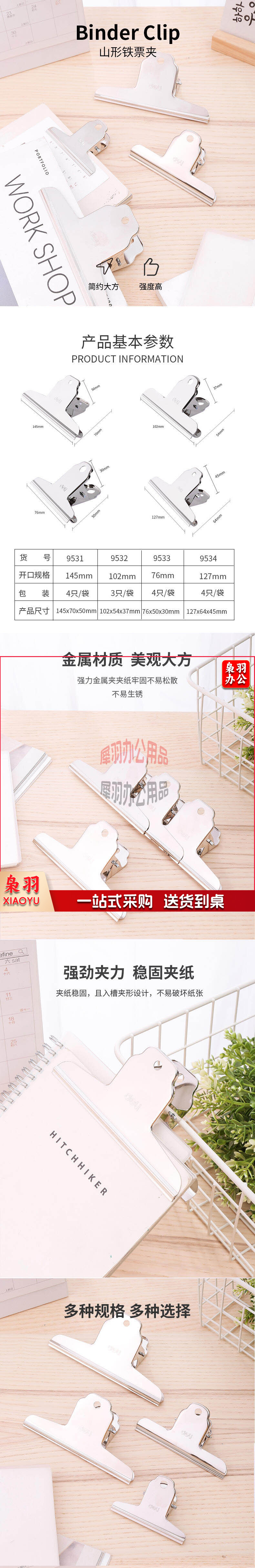 得力9532 不锈钢金属铁票夹 山形铁票夹 画板夹 财务票据夹 金属夹