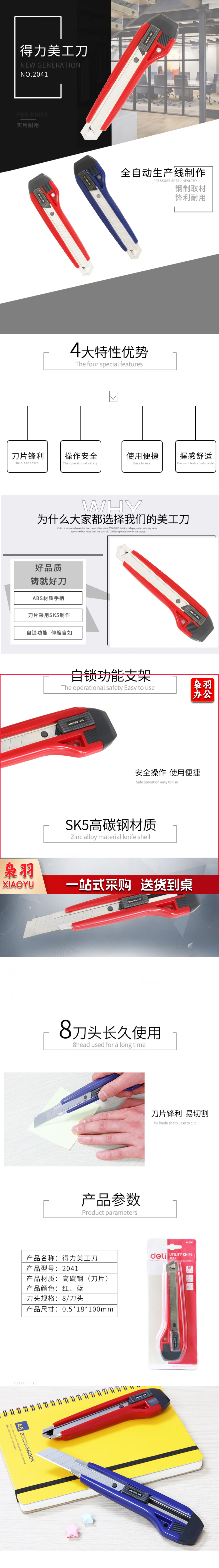 得力 大号美工刀 18mm刀片 裁纸刀 壁纸刀 2041黄色