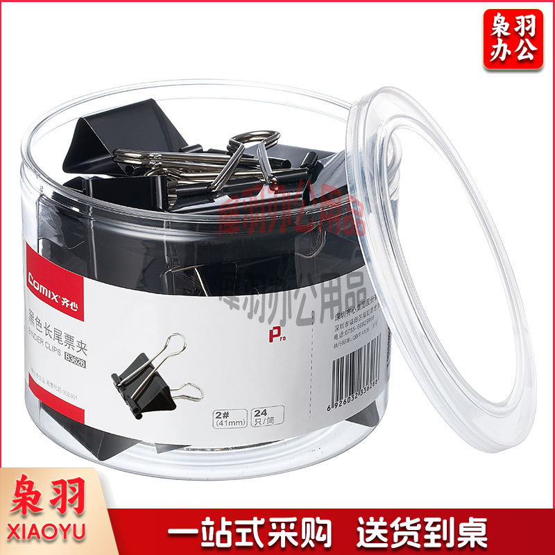 齐心 B3626黑色长尾票夹 2# 41mm 24只/筒