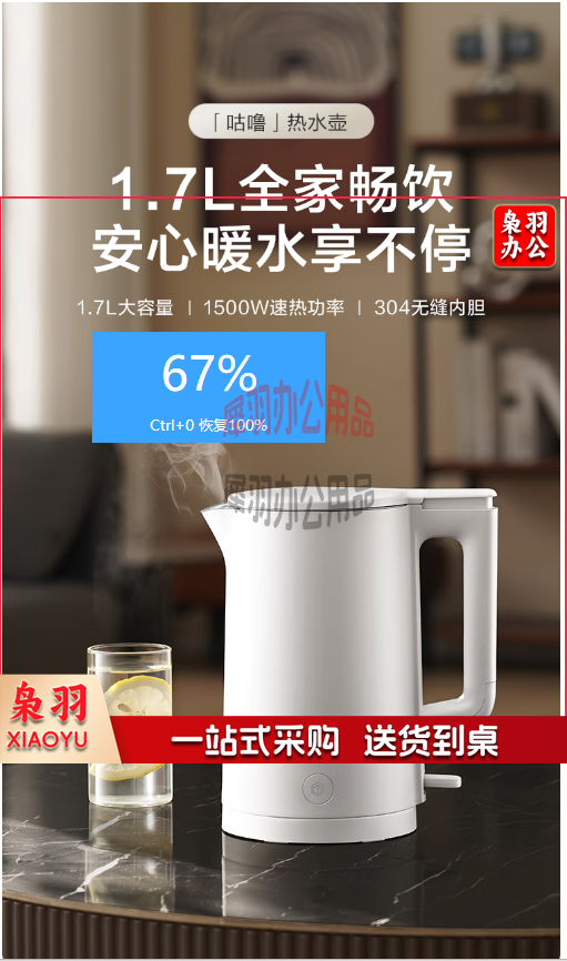 京东京造304食品级烧水壶1.7L 家用热水壶电热水壶 速热一体无缝内胆304食品级不锈钢自动断电电水壶