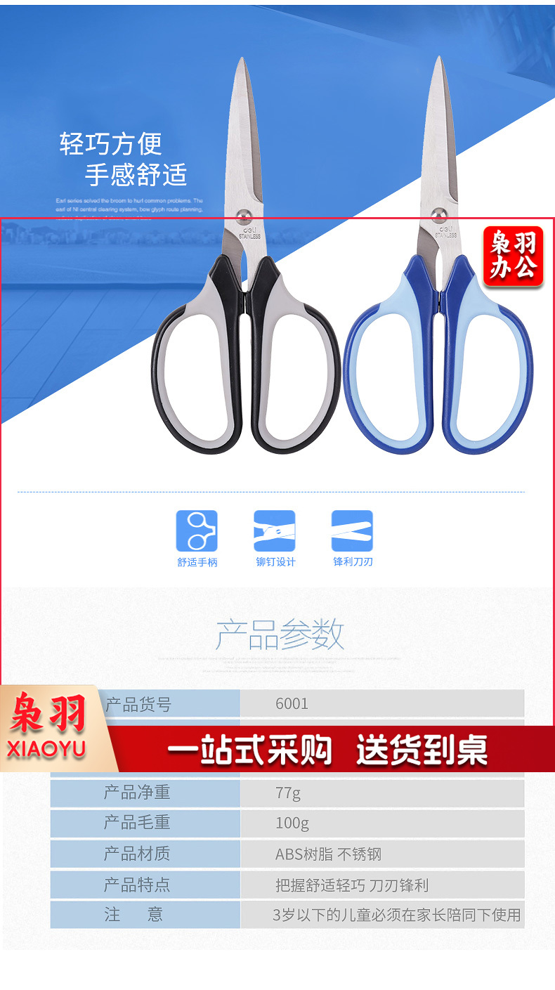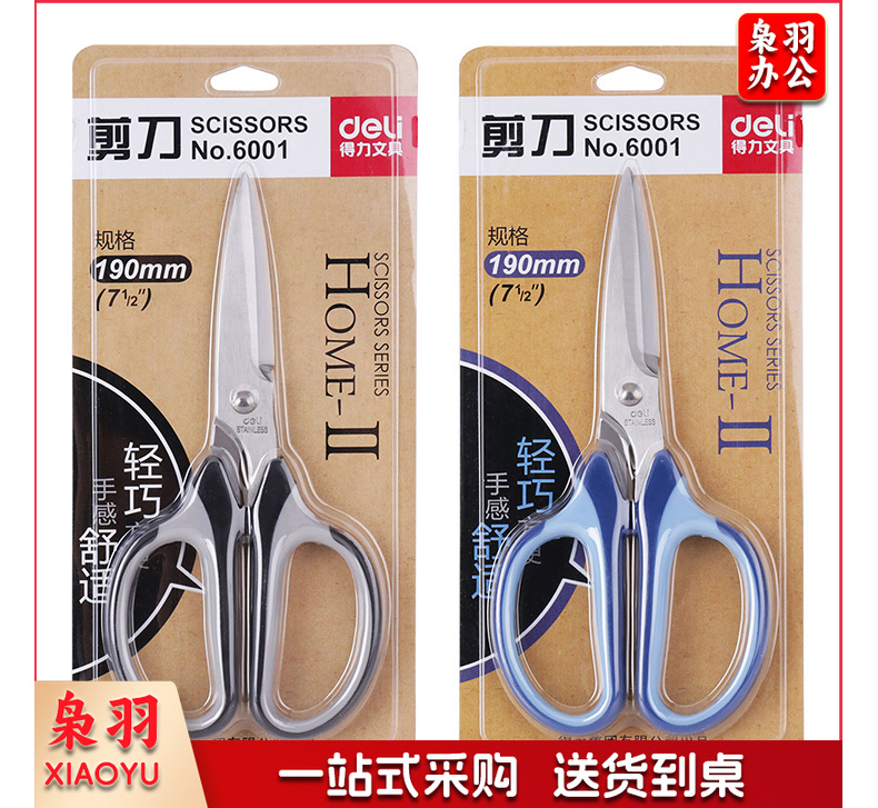 得力 6001 剪刀 全长190mm 办公剪刀 (混)