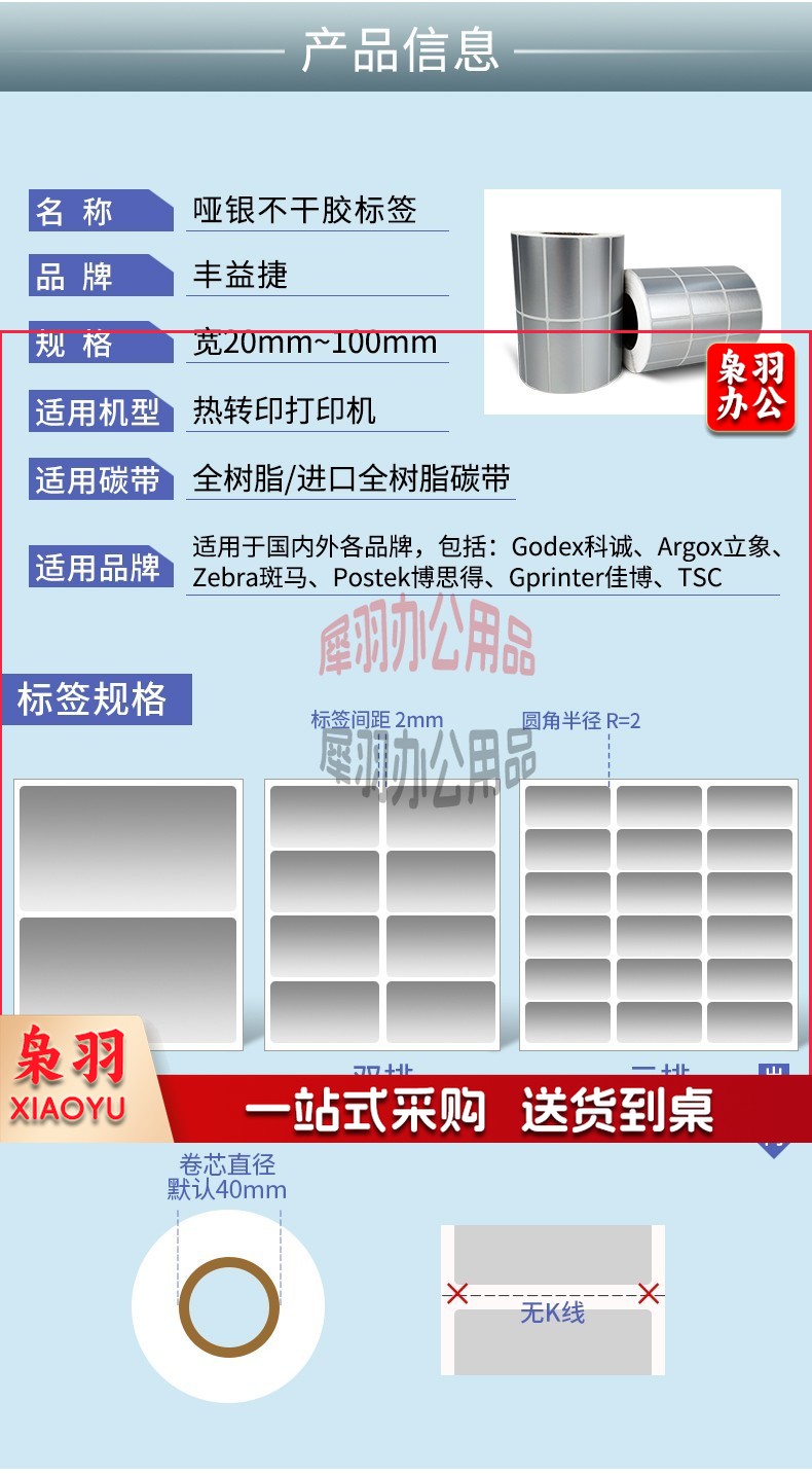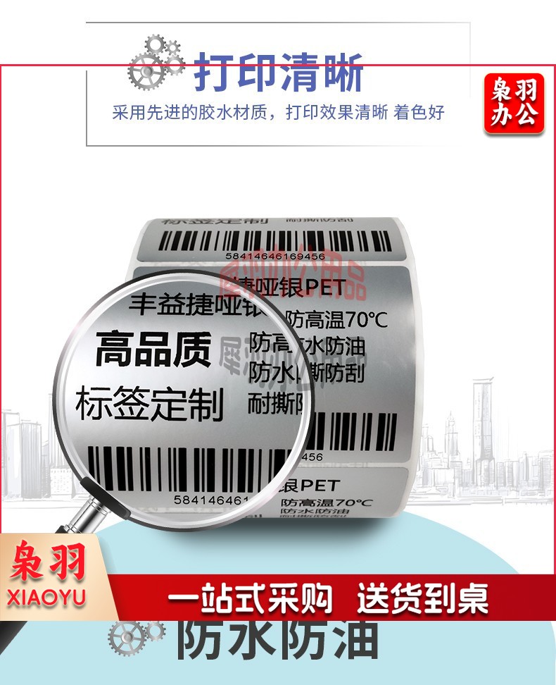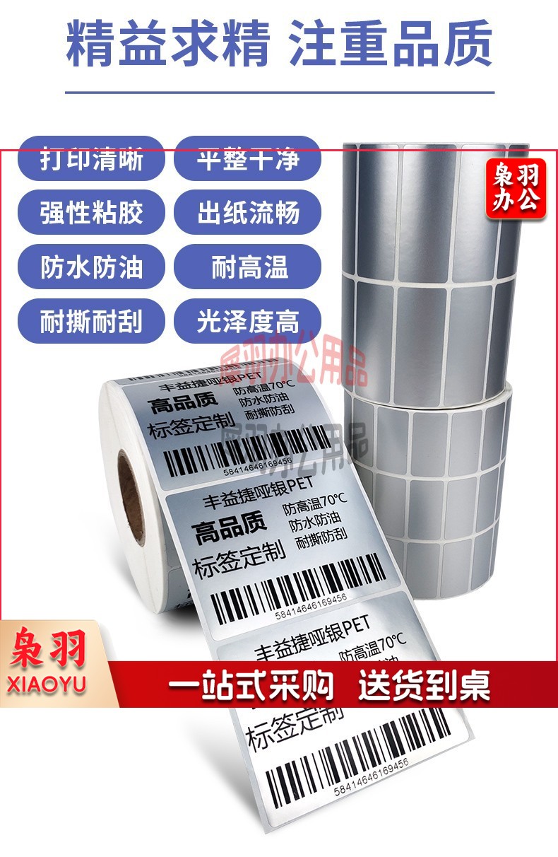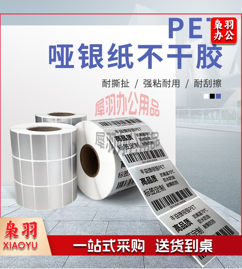 丰益捷 哑银条码标签纸优质PET不干胶打印机防水耐刮货架亚银贴纸单多排多规格可印刷定制 【三防】哑银标签三卷起售 100*80*500单排