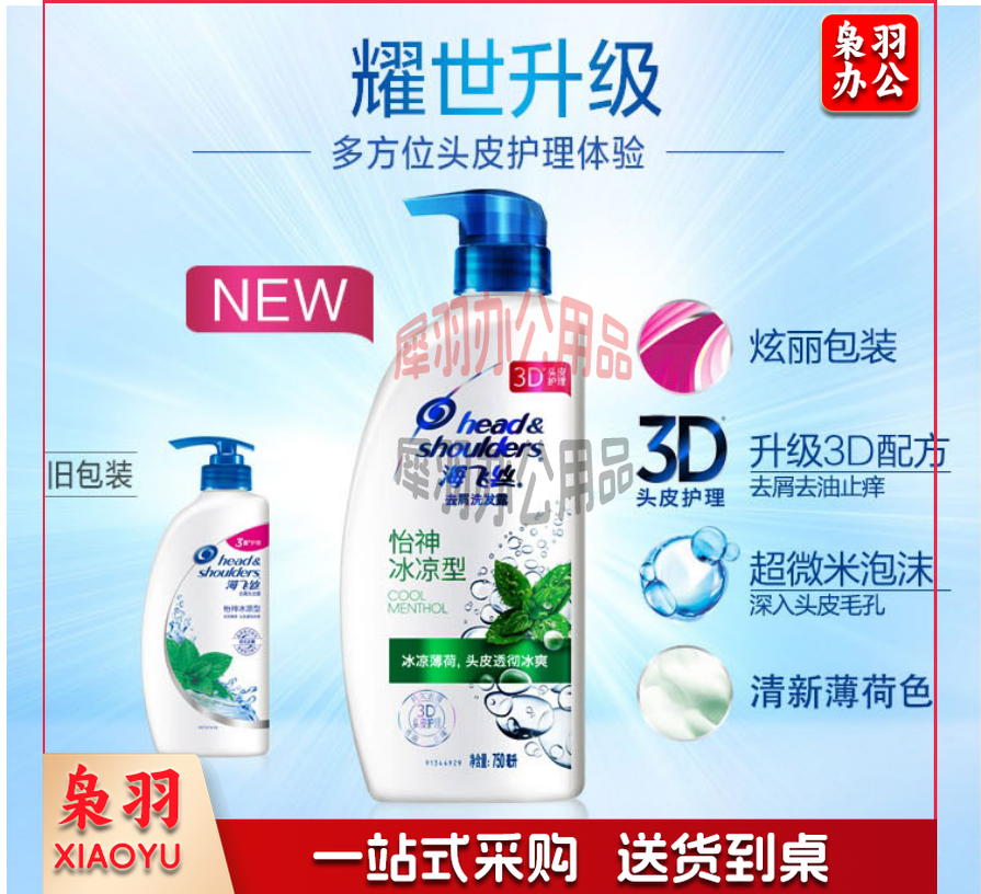 海飞丝洗发水怡神冰凉薄荷750ml 持久去屑止痒清爽
