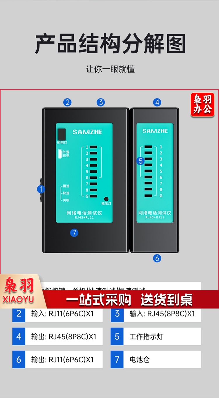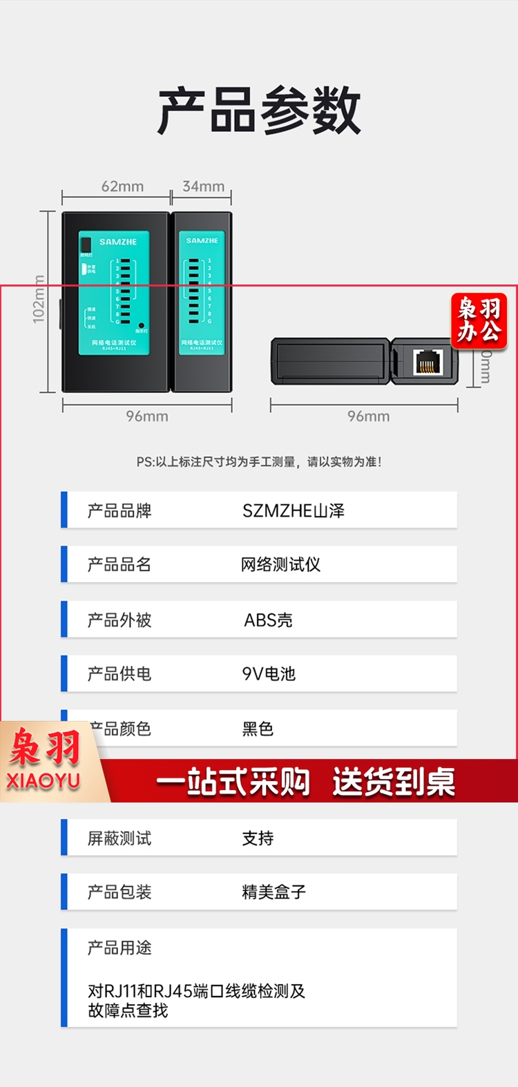 山泽/SAMZHE CS-50 测线仪 电脑水晶头电话线网络多功能测线器 黑色(单位:套)