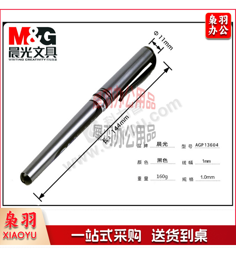 晨光 M&G 拔帽大笔画中性笔 AGP13604 1.0mm (黑色) 12支/盒 (替芯 AGR67017)