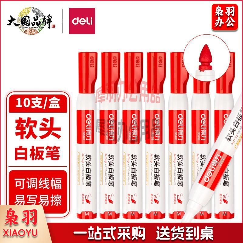 得力(deli) 软头可擦白板笔 办公教学会议白板笔 办公用品 红色 S508红