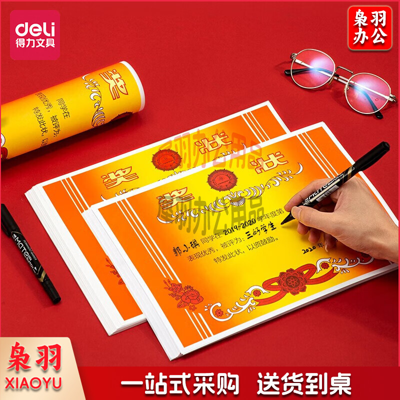 得力24828 A4奖状 双胶纸奖状 50张/(包)