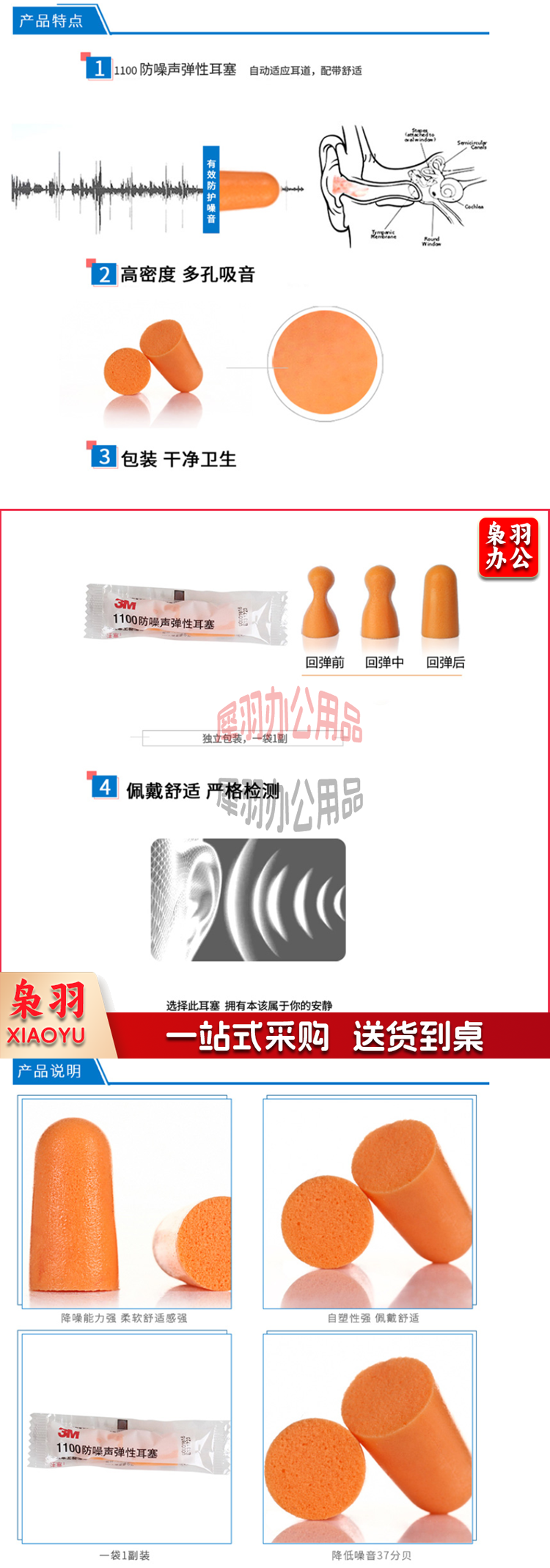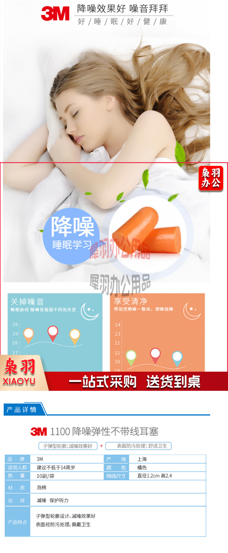 3M 1100(不带线) 耳塞 抗噪 防噪音 睡眠隔音耳塞(10付/包)