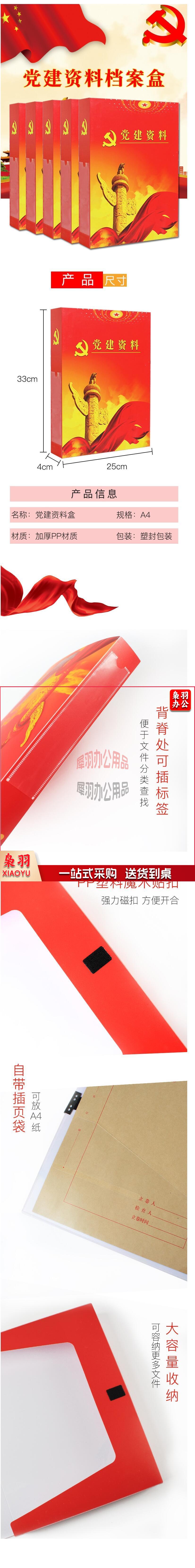 党建档案盒 红色塑料党建文件盒 33*25CM 侧宽40mm 加厚塑料文件资料盒