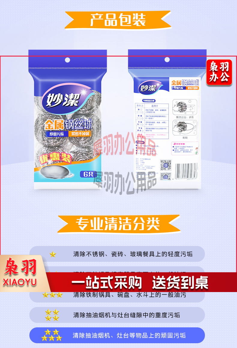 妙洁钢丝球不锈钢洗碗铁丝球刷锅球不断丝家用厨房金属清洁球 1包共6个