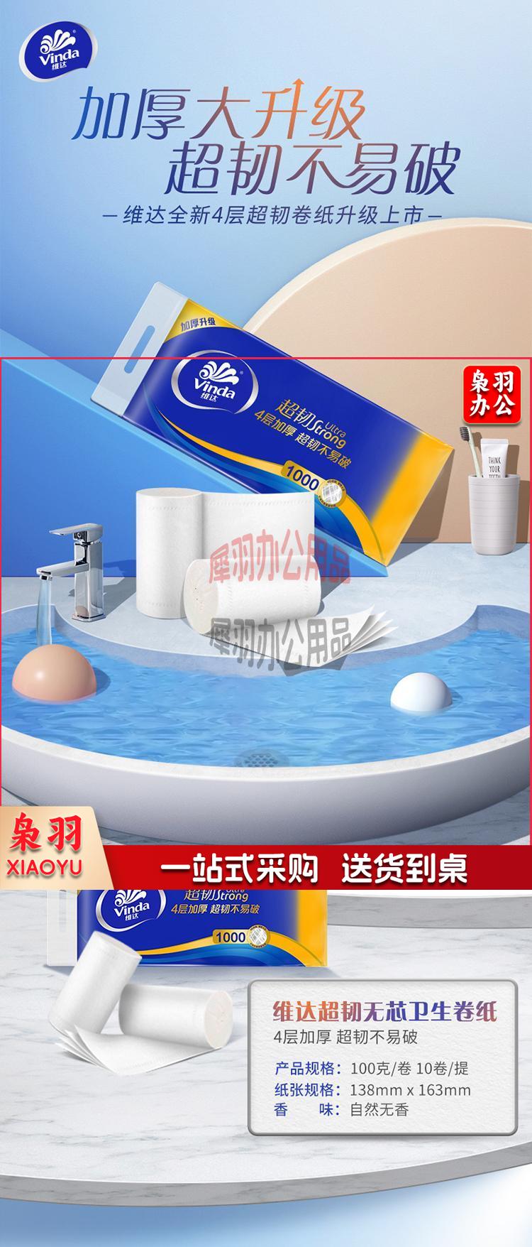 维达(Vinda) 无芯卷纸 超韧4层100g卫生纸*10卷 母婴可用(新旧交替发货)