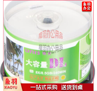紫光(UNIS)DVD+R DL光盘/刻录盘 8速8.5G 单面双层 桶装50片 空白光盘