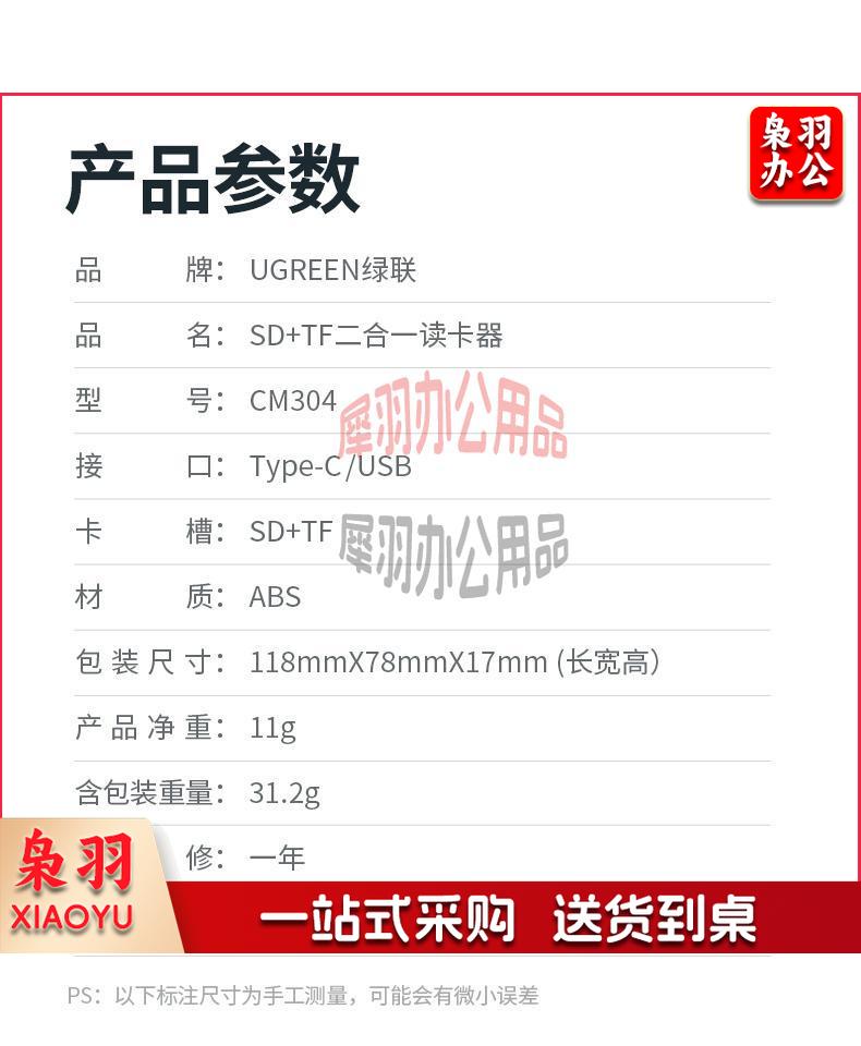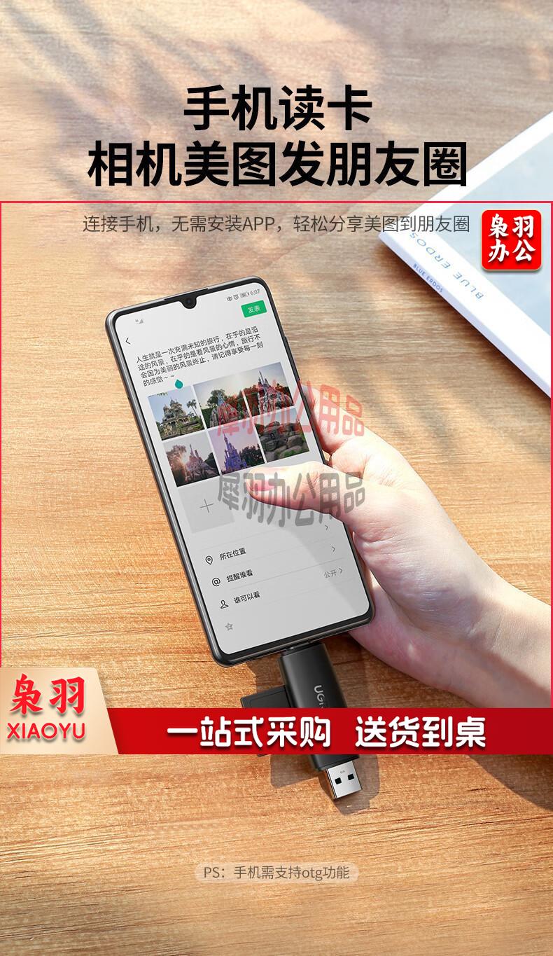 绿联 USB高速多功能二合一读卡器 支持TF/SD单反相机行车记录仪安防监控OTG手机内存卡 40295USB3.0读卡器多功能四合一款