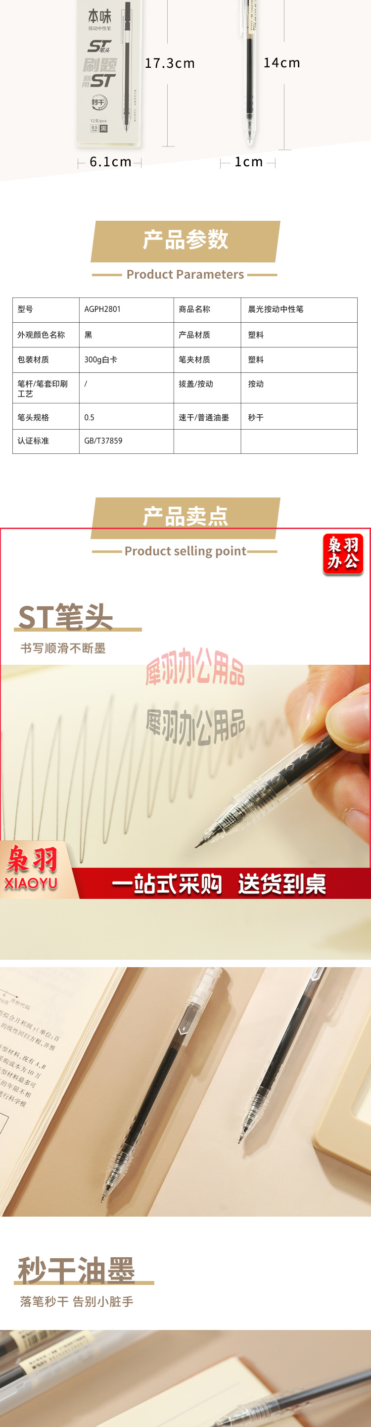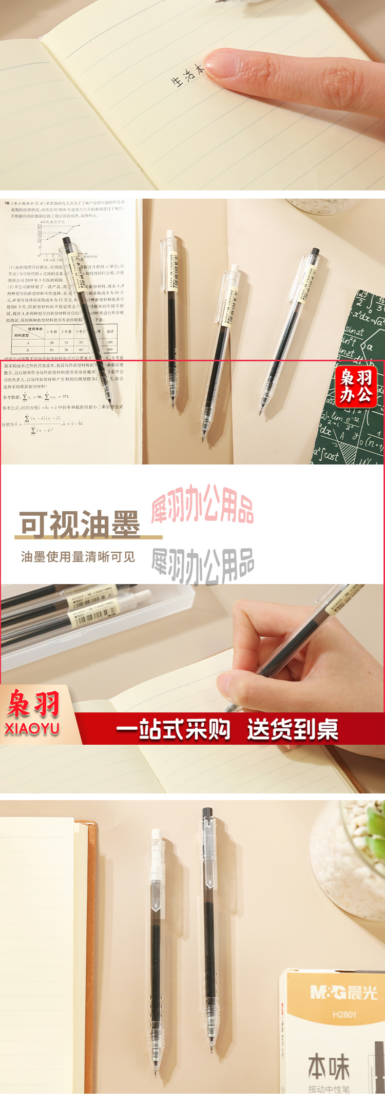 晨光(M&G) 晨光本味系列中性笔ins简约无印风全针管笔芯0.5黑色签字笔小清新 AGPH2801按动 黑色0.5单支装