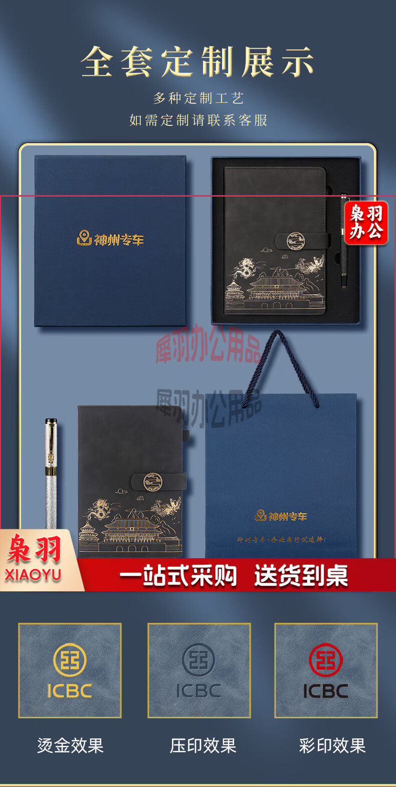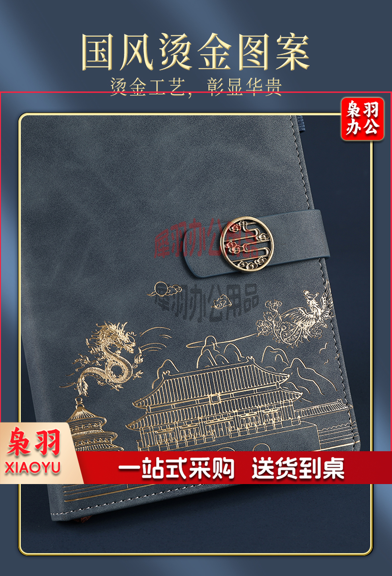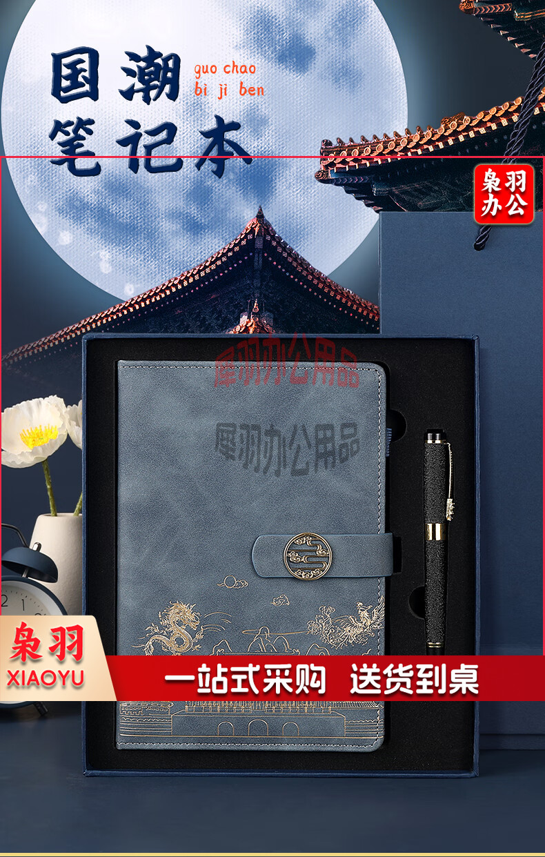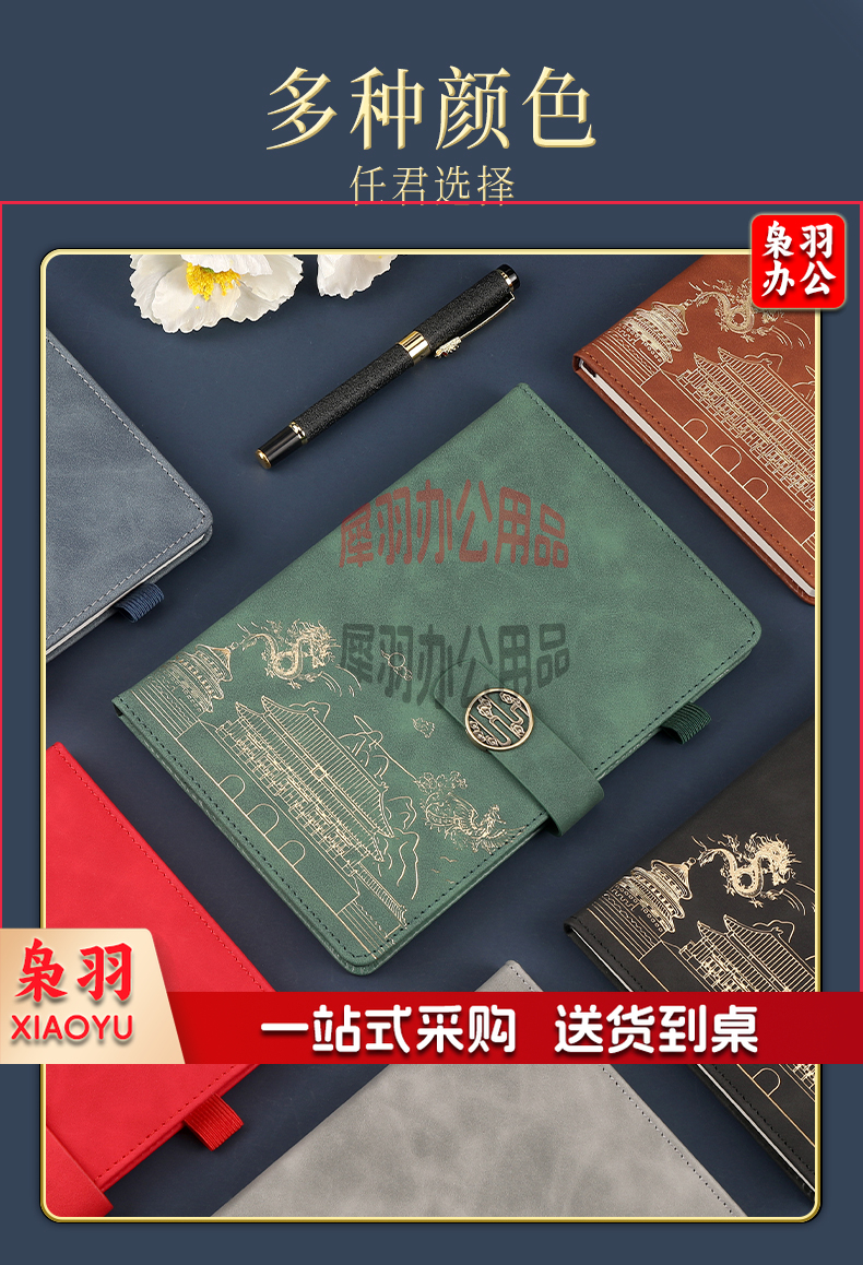 可定制国潮故宫高颜值笔记本本子精美礼品套装记事本a5文具礼盒刻字商务伴手礼 龙凤呈祥套装(绿色