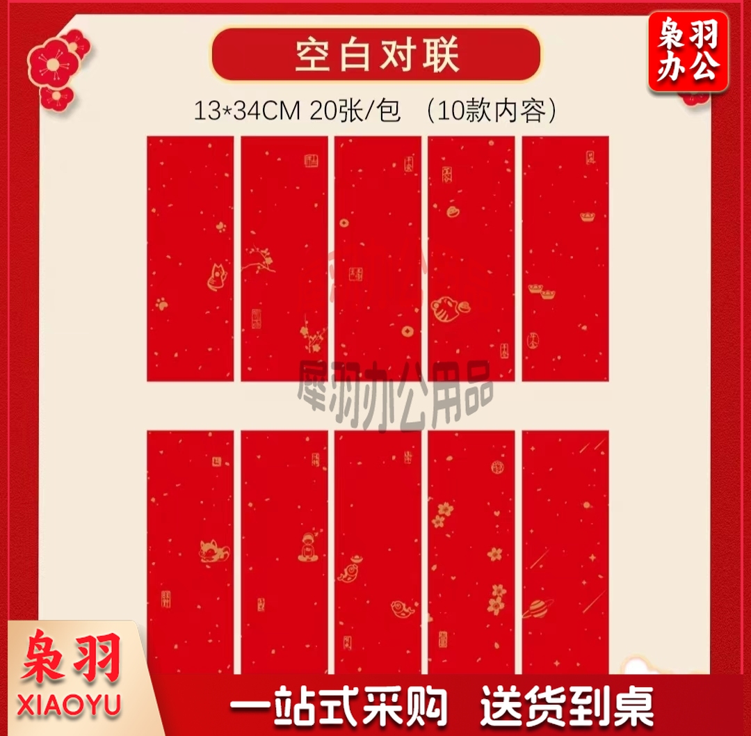 对联纸洒金烫金蜡染纸手写万年红宣纸四言空白春联红纸 空白款13*34cm 20张/包