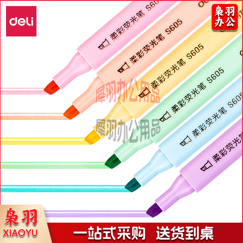 得力S605柔彩三角杆荧光笔(混)(盒)