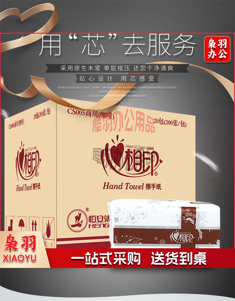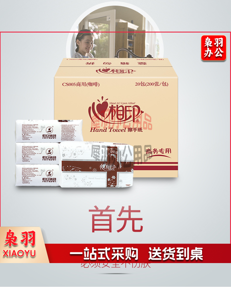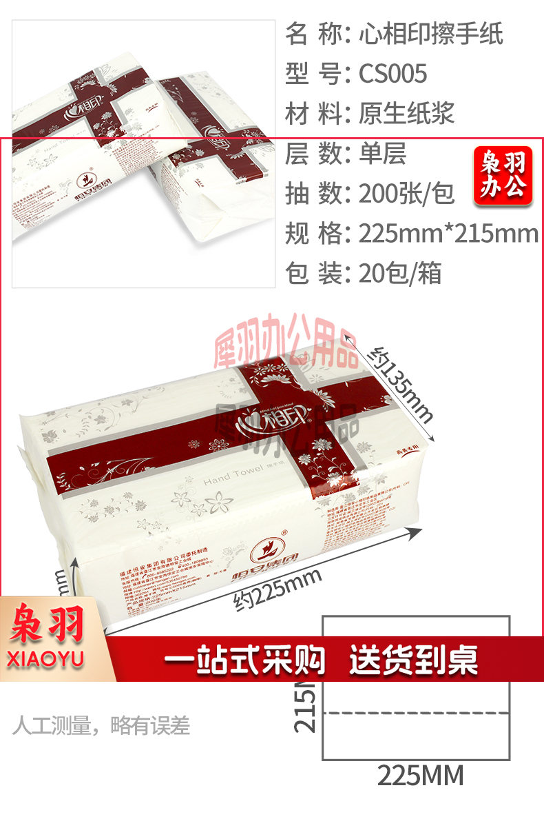 心相印擦手纸抽取式纸巾200抽酒店商用抹手纸干手纸抹手纸CS005 20包/箱