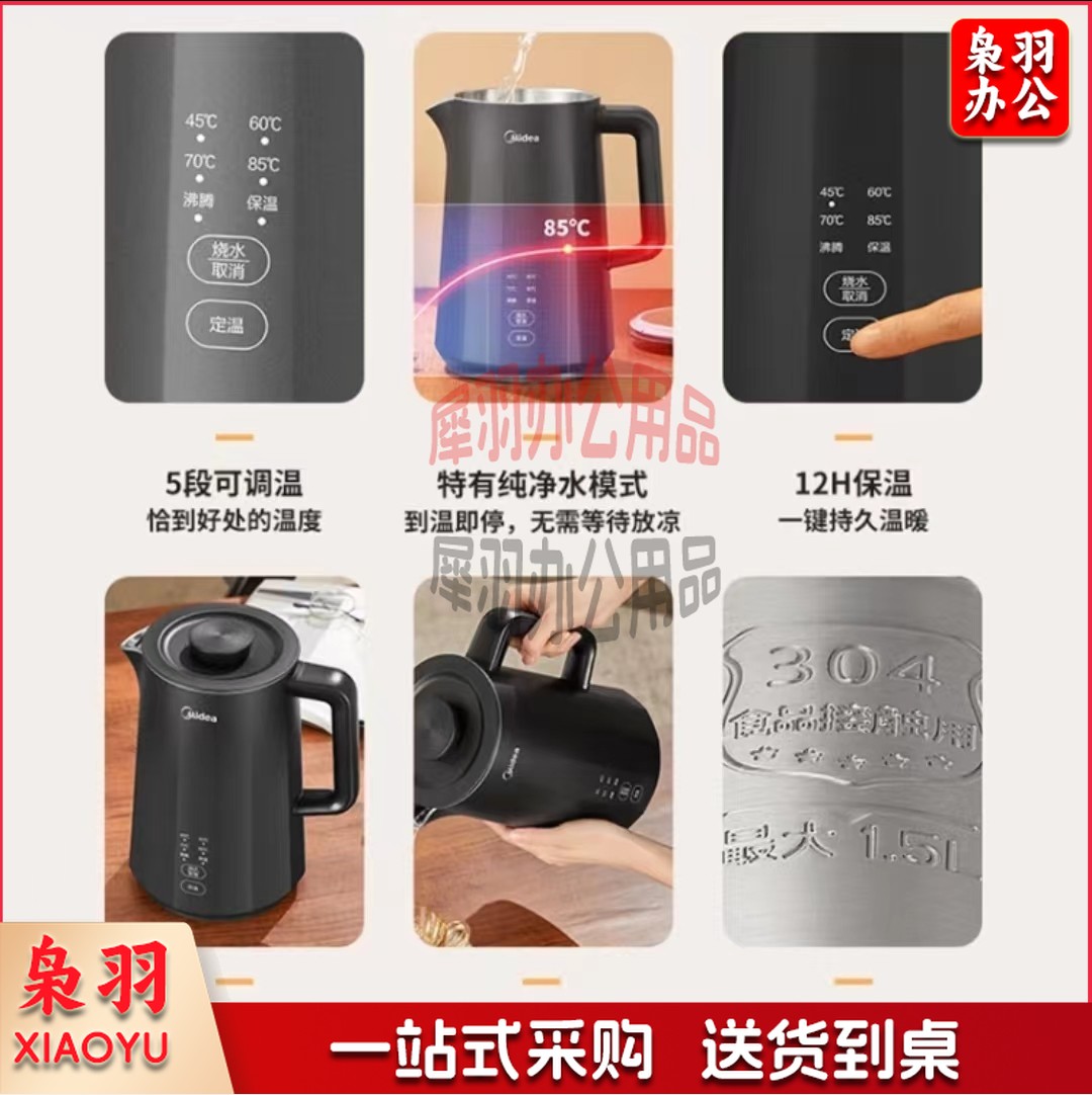 美的(Midea)电热水壶烧水壶双层防烫一体无缝拔盖设计净甜家用办公大容量多段控温恒温开水壶MK-SHE1530