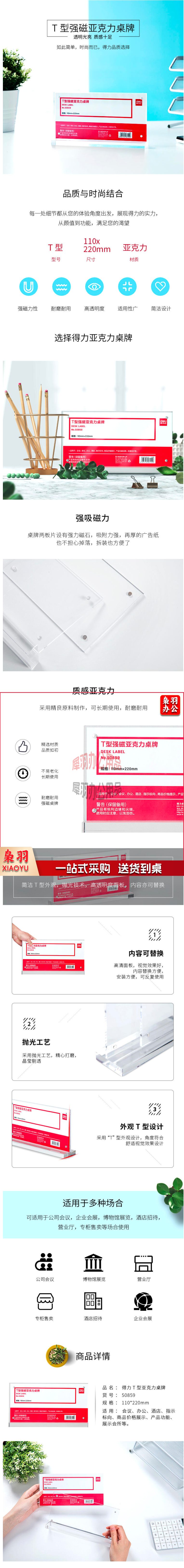 得力(deli)50859T型强磁亚克力桌牌 台卡 单面透明 110*220mm.