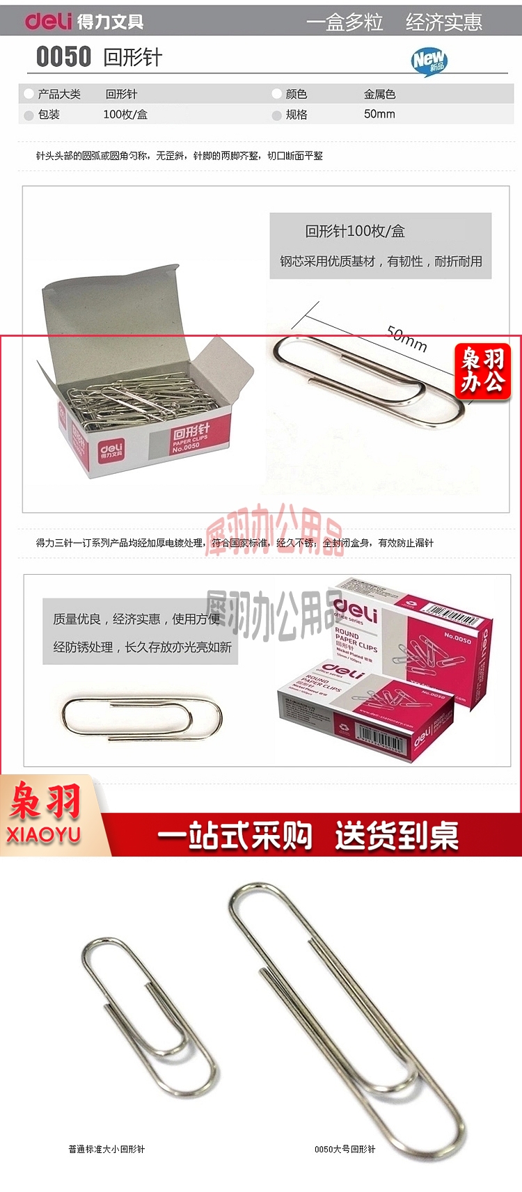 得力0050 回形针 50mm曲别针大号回形针 100枚/盒 (单位:盒)