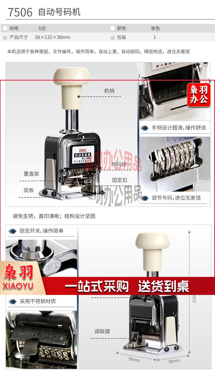 得力(deli)6位财务办公自动号码机/打码机 盖印清晰 财务用品 办公用品 7506
