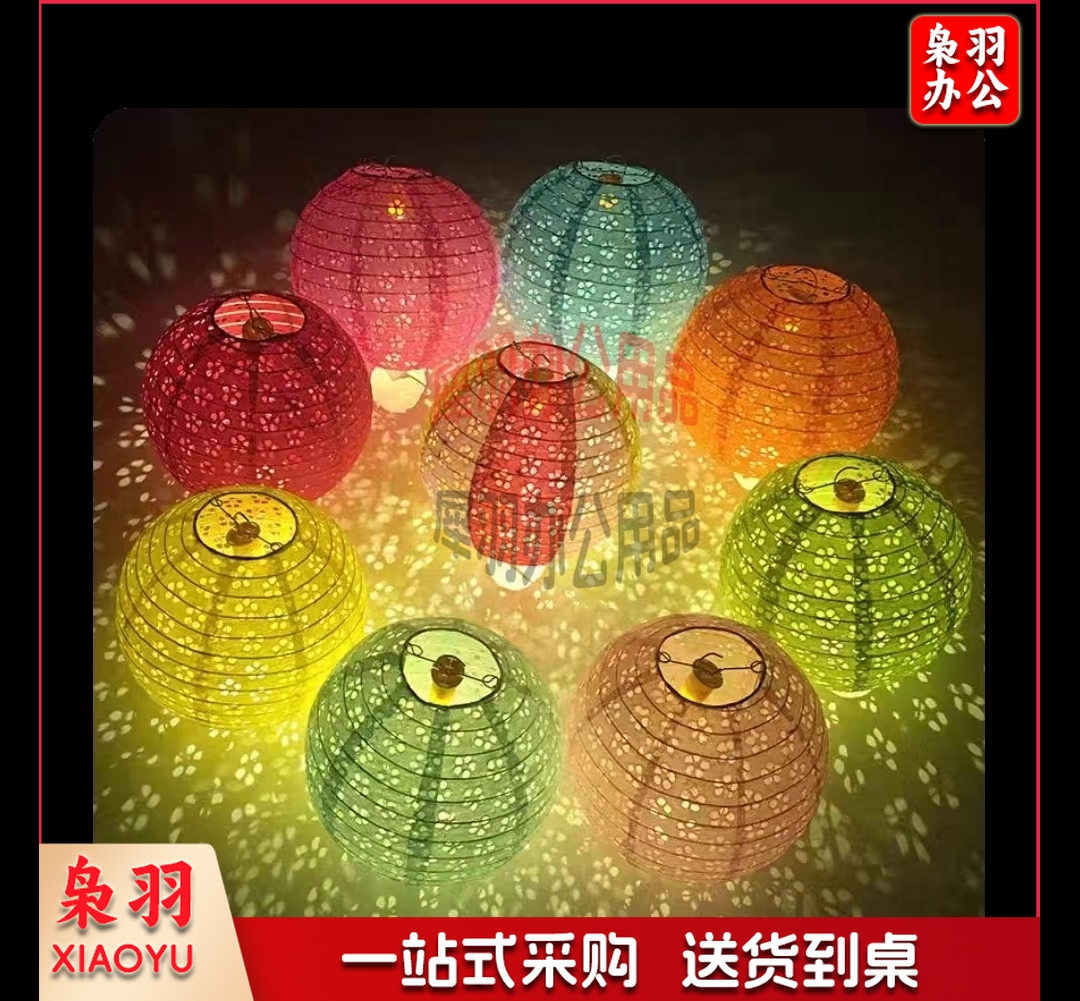 节日圆形镂空纸灯装饰彩色小灯笼 8寸(不含灯芯)