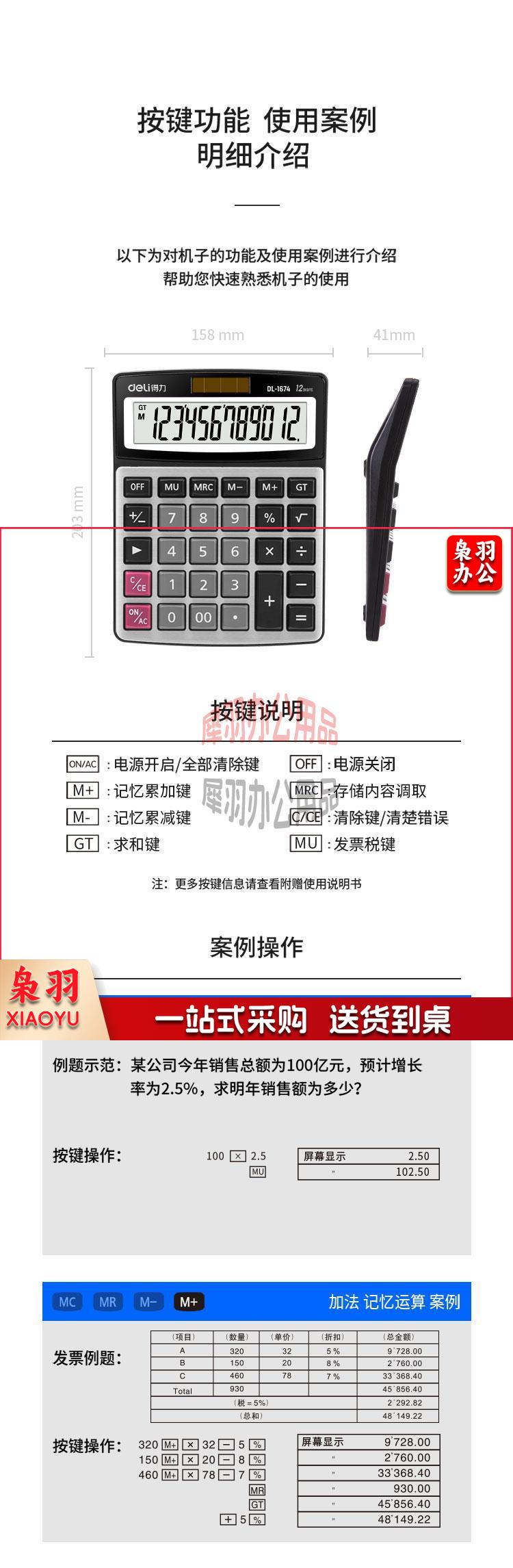 得力(deli)财务办公金属面板桌面计算器 耐磨按键桌面计算机 办公用品 银色1674